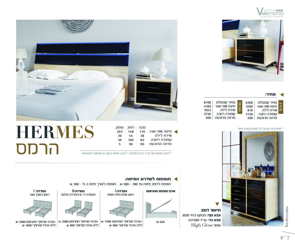 עמוד הבית חדרי שינה חדר שינה הרמס דגם V1017