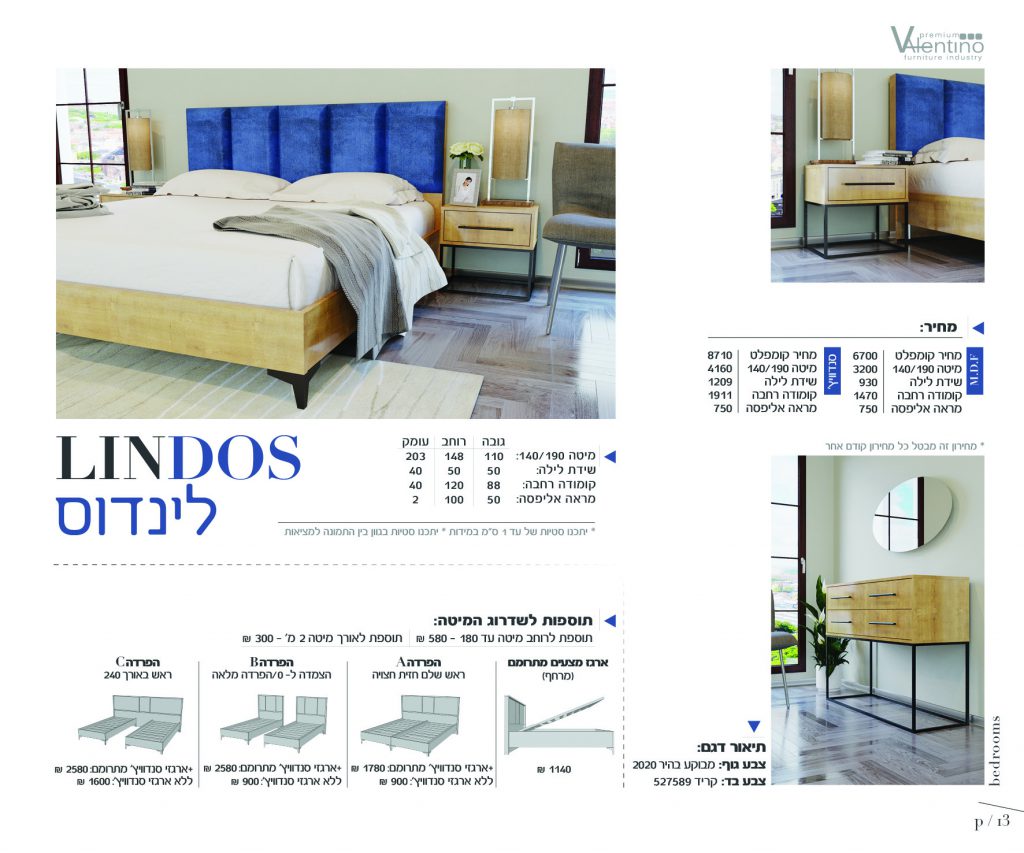 עמוד הבית חדרי שינה חדר שינה לינדוס דגם V1015