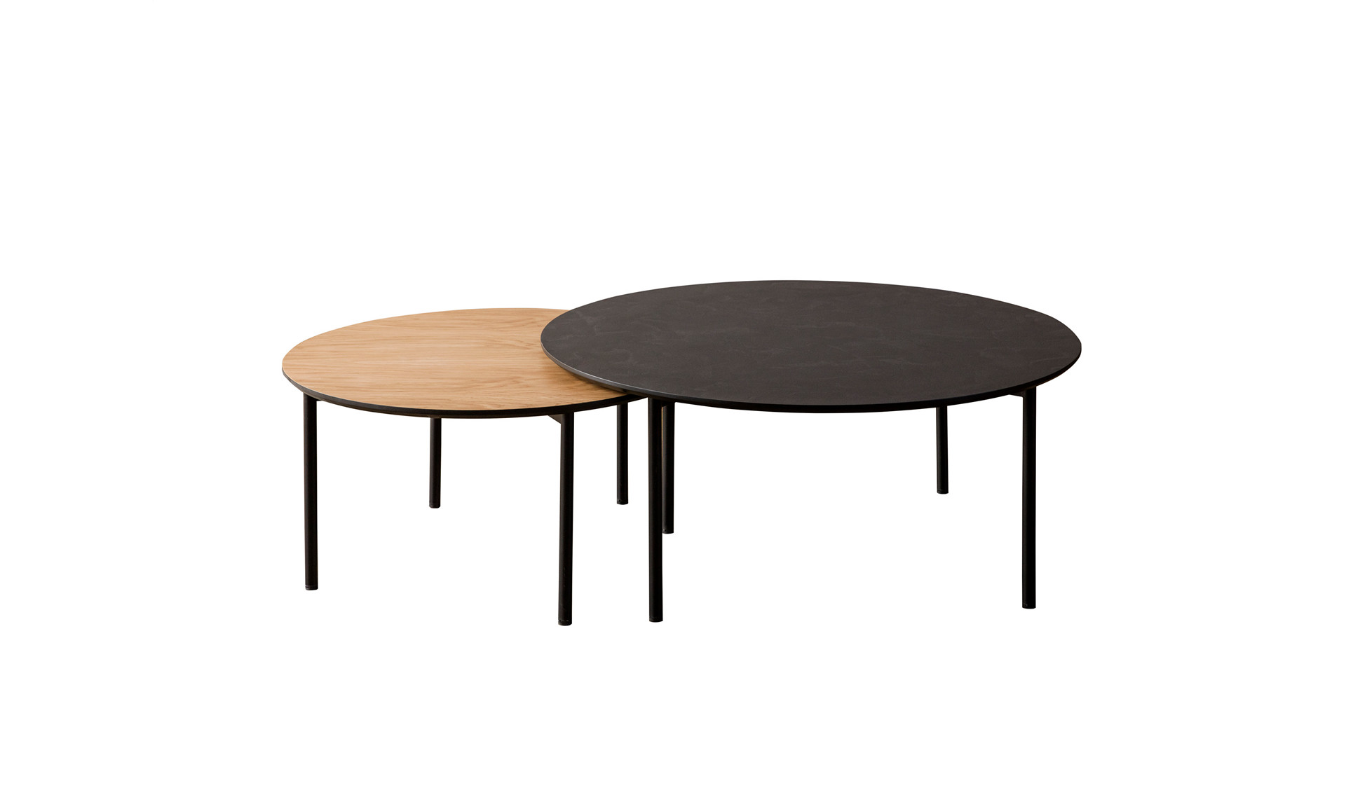עץ MDF מצופה פורמייקה, רגלי מתכת בצבע.