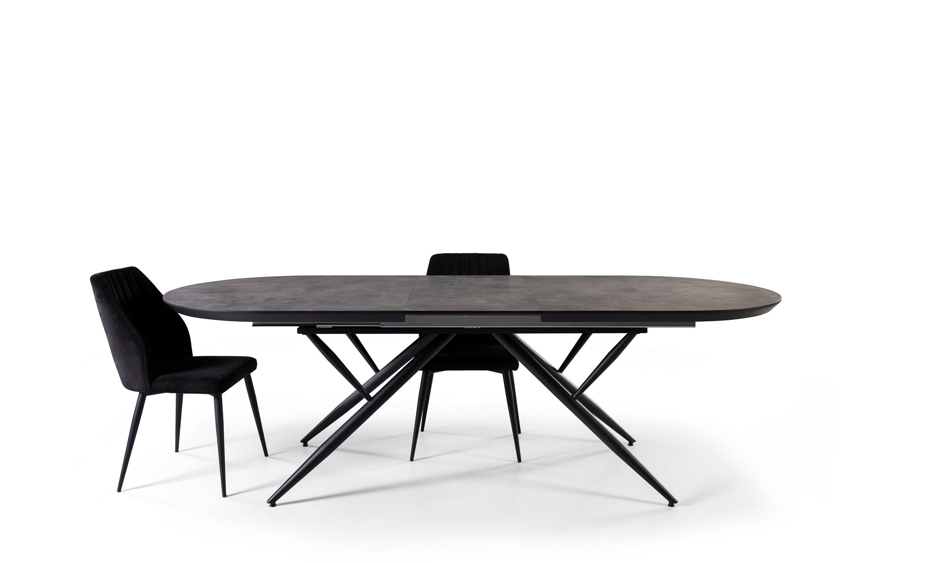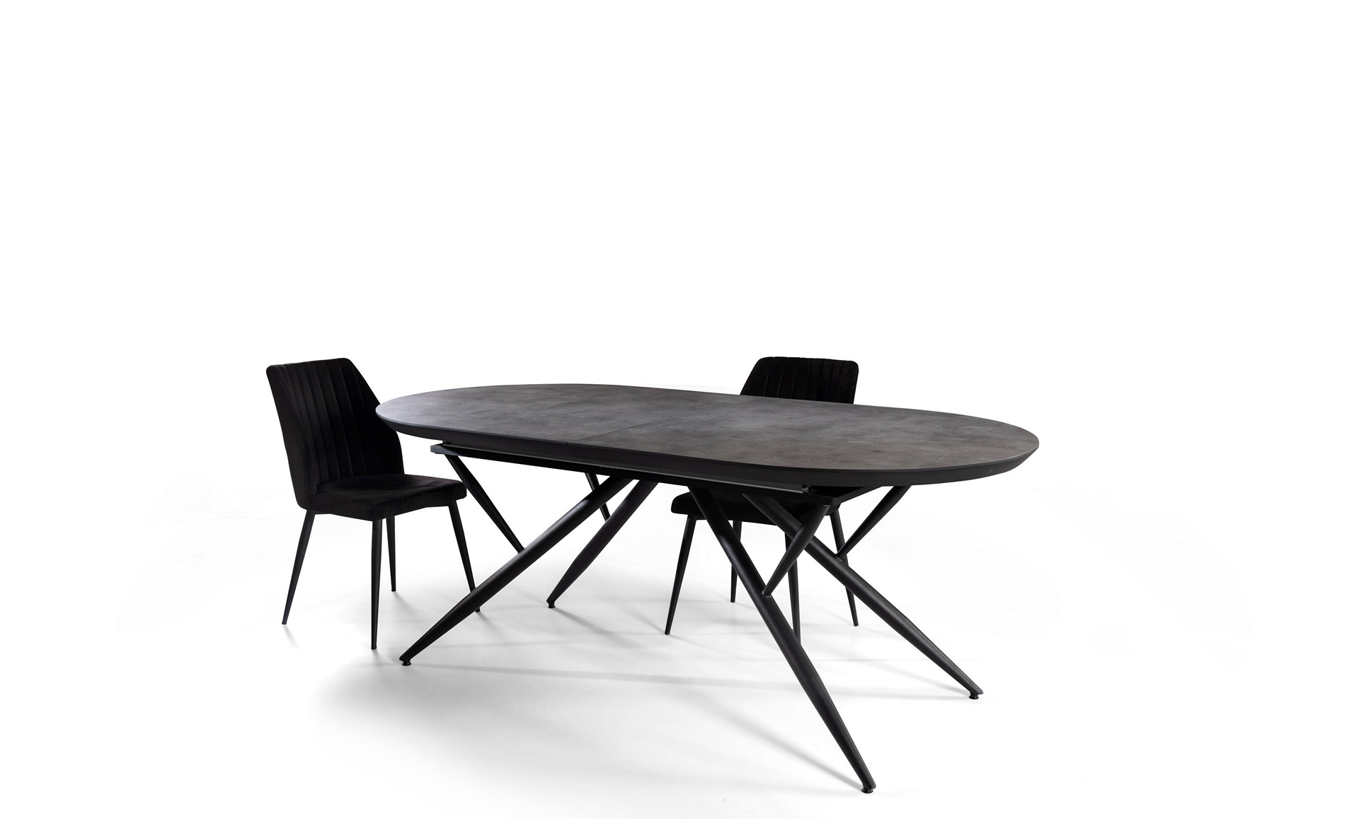 משטח עץ דמוי שיש / אלון ברמת גימור גבוהה, רגלי מתכת בצבע שחור